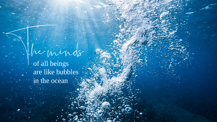The minds of all beings are like bubbles in the ocean. How to find peace in our minds? The whole universe is one.